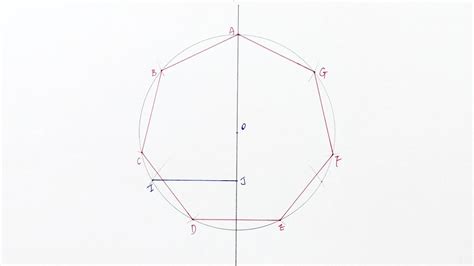 Using a compass, measure the distance from the center (O) to point A. This distance represents the radius (r) of the heptagon.