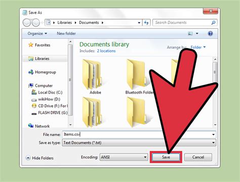 Choose a name for your CSV file and select the location where you want to save it. You can browse your computer’s directories to find the desired location.
